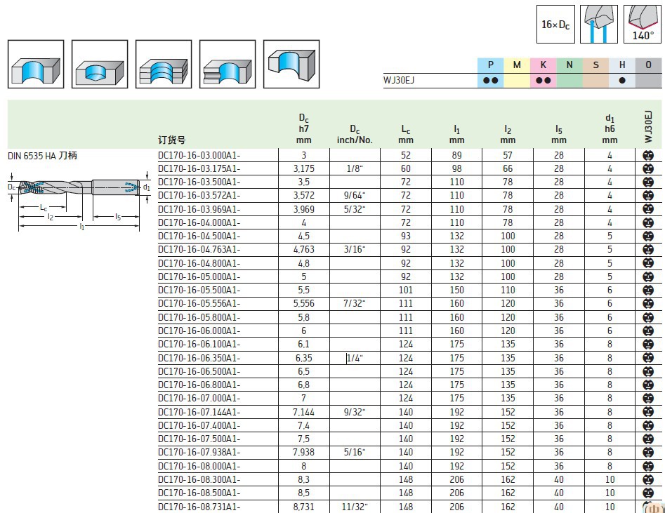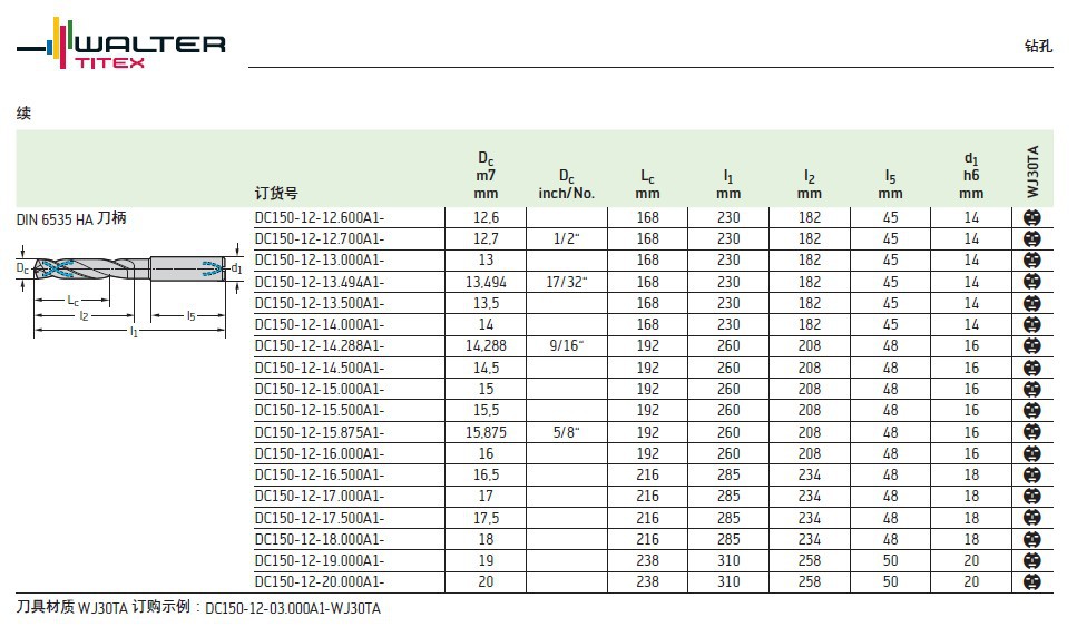 瓦尔特合金钻头特价批发 DC150-12-12.600A1-WJ30TA 加工钢件