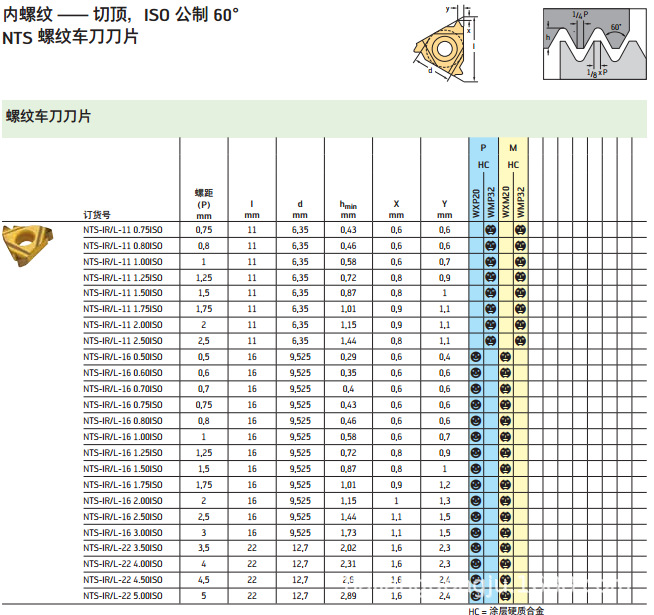 规格:NTS-IR/L-16 1.75ISO WXM20