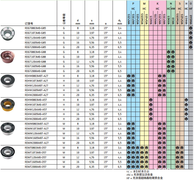 | P.K | WKP25S、WKP35S | WKP25S、WKP35S 适合于钢和铸铁加工 |