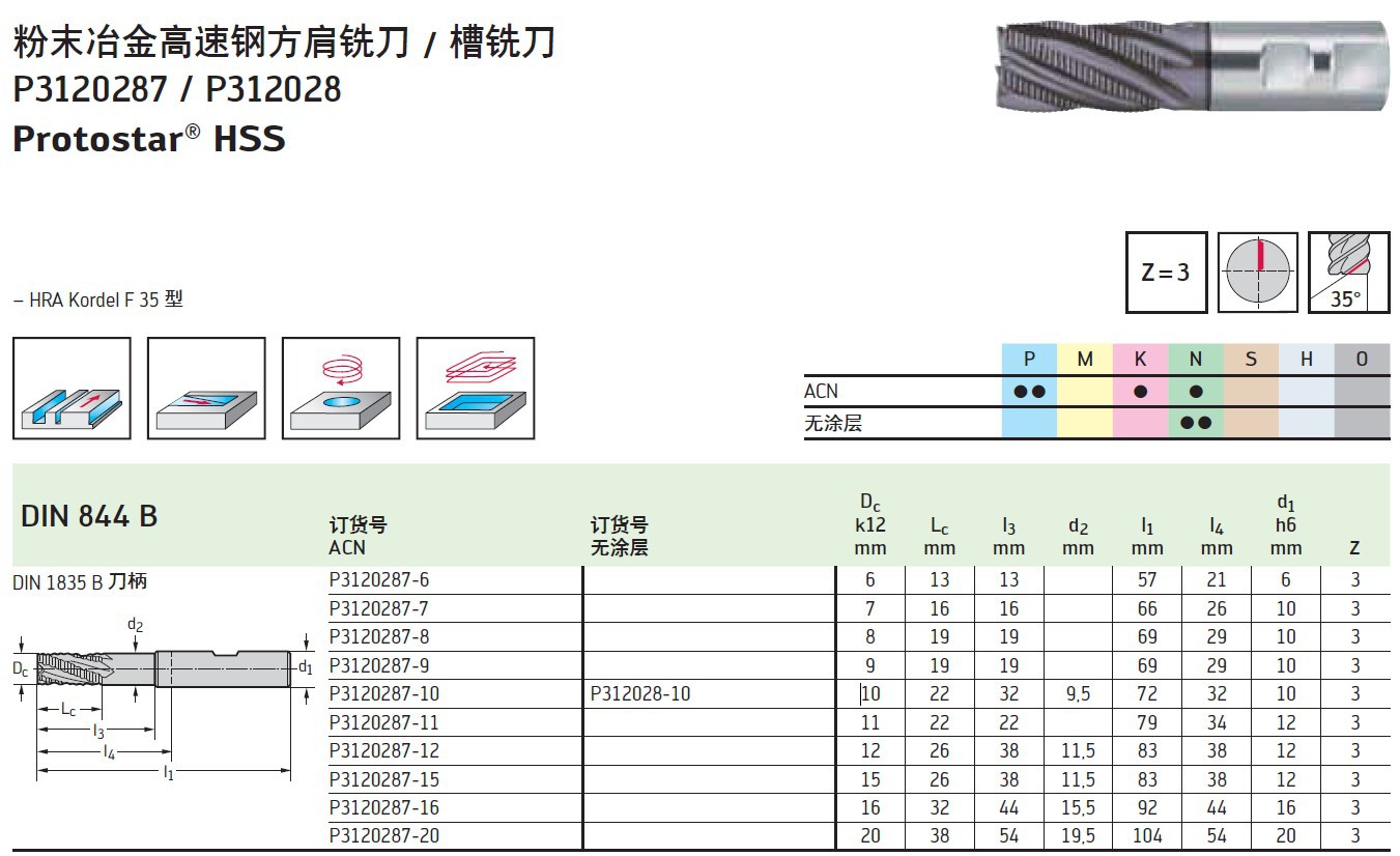 产品简介: 德州瓦尔特立铣刀 P3120117-20 加工钢件,有色金属