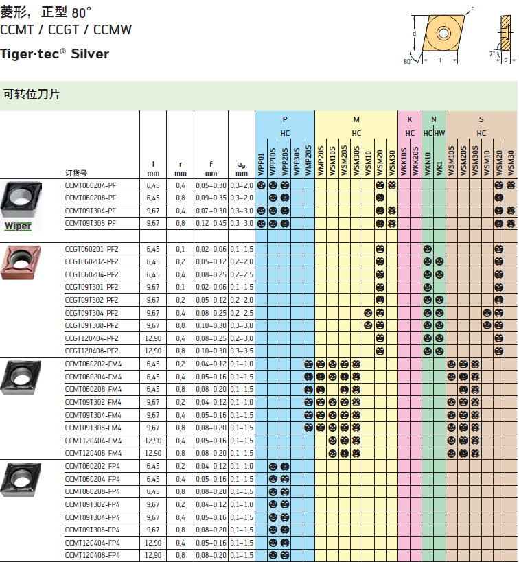 规格:CCMT060204-PF WSM20