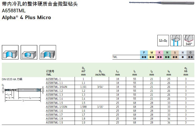 产品简介: 瓦尔特合金内冷钻头 DC150-12-12.500A1-WJ30TA 加工有色金属